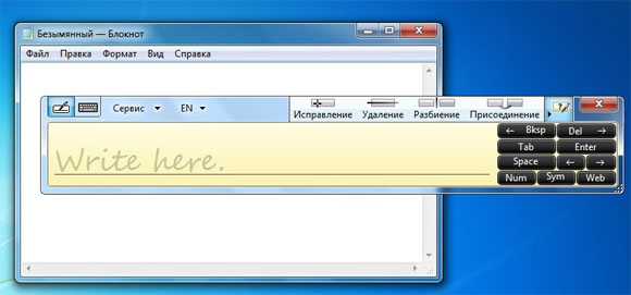 Причем экранная клавиатура может работать как в расширенном режиме, так и в режиме рукописного ввода с распознаванием.