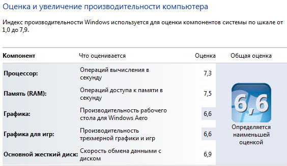Что видим на табличке планшета? Процессор - совсем хилый. Память - более или менее. Индекс графики - терпимый для планшета. Скорость обмена данных с диском - очень высокая, но оно и понятно - здесь же стоит твердотельный накопитель.