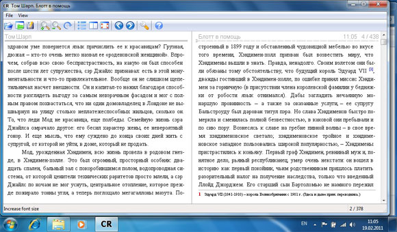Как читалку планшет пока использовать не особо удобно. Прежде всего потому, что под Windows толком нет продвинутых читалок, рассчитанных на листание пальцами.