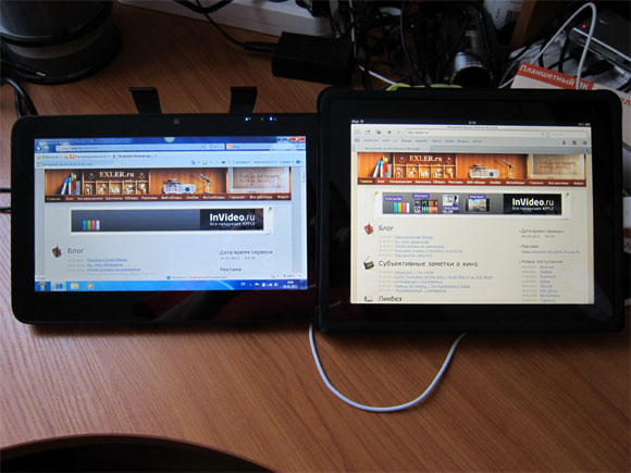 А вот так планшет смотрится в сравнении с айпадом.