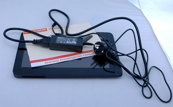 Комплект тут, прямо скажем, не особо богатый. Устройство, брошюрка, адаптер питания, установочный диск Windows 7, диск с драйверами. Впрочем, как я понял, еще есть варианты комплектации с USB-кабелем, наушниками и чехлом.