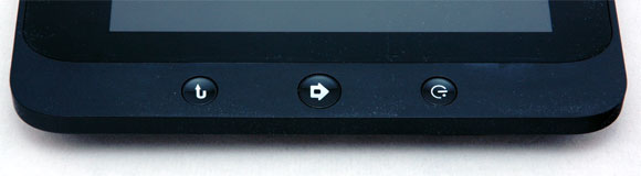 Практически вся верхняя крышка, включая экран, закрыта глянцевым стеклом. Справа - добротный черный пластик с тремя универсальными кнопками управления: питание, домой, возврат.