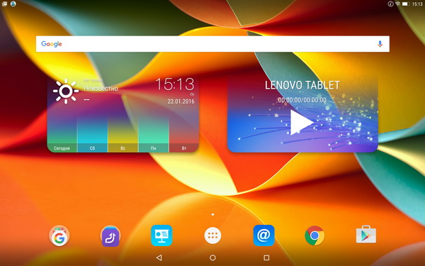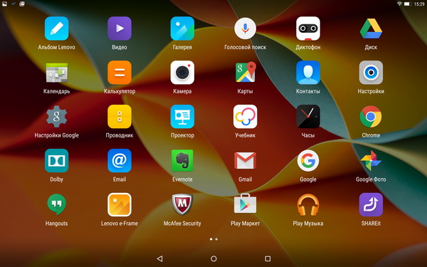 Android 5.1 с оболочкой и системными приложениями от Lenovo. Замечу, что их оболочка для планшетов заметно отличается от оболочки для смартфонов.