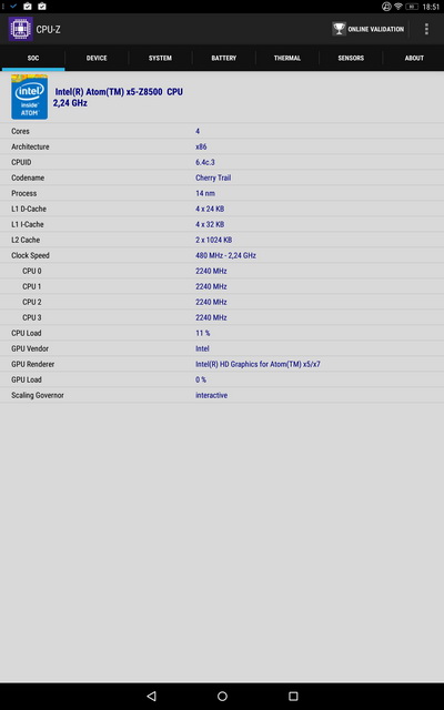 Что тут мы имеем? Платформа Intel Atom x5-Z8500 по производительности уступает тому же Snapdragon 810, однако для андроидного планшета его должно хватить.