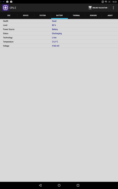 Планшет поддерживает быструю зарядку и от родного адаптера шустро заряжается на 12V 2А. Емкость батареи по тесту примерно соответствует заявленной.