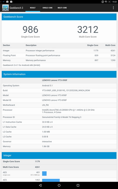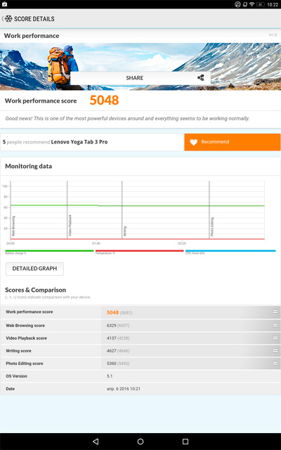 Впрочем, время по тестам примерно соответствовало тому, что я получил от предшественника этого планшета - Lenovo Yoga Tablet 2 Pro - с поправкой на то, что здесь 10-дюймовый дисплей, а там 13-дюймовый.