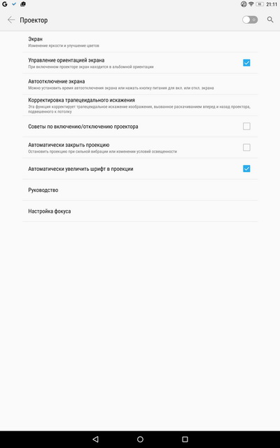 Проектор выводит все, что воспроизводится на планшете. Надо будет в обзоре это добавить.