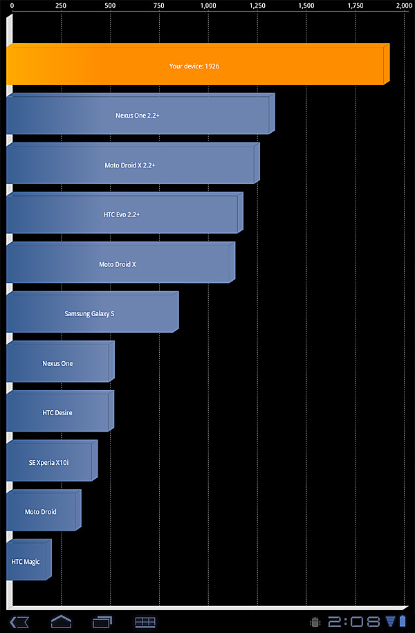 И насчёт "Тут, правда, сравнение идет только с коммуникаторами, что не сильно показательно" - если так, то зачем вообще публиковать эти результаты??? Для более объективного сравнения скорости на "mobile devices" есть такие реально "cross-platform" тесты как GLBenchmark, которая может использоваться как на девайсах с Android OS так и на девайсах (iPhone, iPad) с iOS: