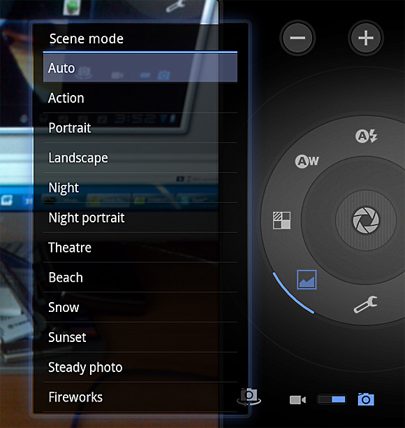 Как видите, среди средств управления - цифровой Zoom, черно-белый режим, режим вспышки, эффекты, сцены, кнопка съемки, настройки, выбор камеры, переключение на режим съемки видео.