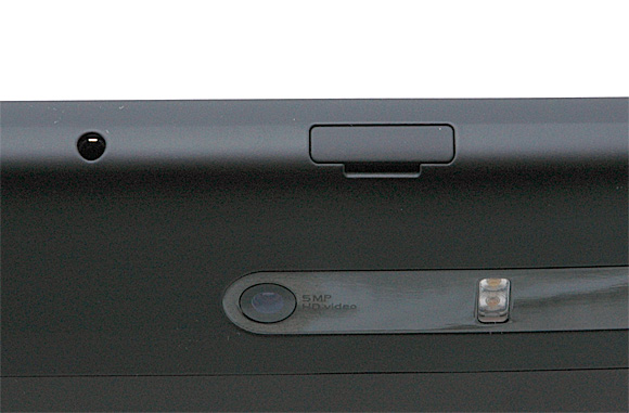 Сверху на задней крышке - объектив камеры, вспышка, динамик и - барабанная дробь! - кнопка включения-выключения и блокировки.