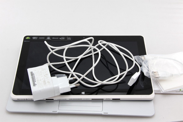 Комплектация: планшет, док-станция, адаптер питания, переходник microUSB-USB, какие-то брошюрки.