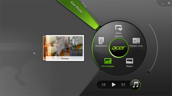 Стандартные предустановленные программы от Acer мы уже неоднократно рассматривали (например, в обзоре ультрабука Acer Aspire S7). Из чего-то нового обнаружил только Acer Ring - программу для упрощения доступа к медиафайлам и документам.