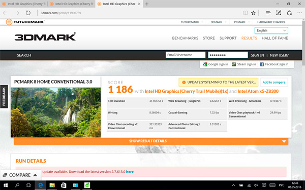 В процессе тестирования планшет вел себя нормально, проблем не заметил. На "тяжелых" приложениях проявлялся небольшой нагрев задней крышки в районе расположения процессора. Переход от альбомной к планшетной ориентации происходил с традиционной для Windows медлительностью.