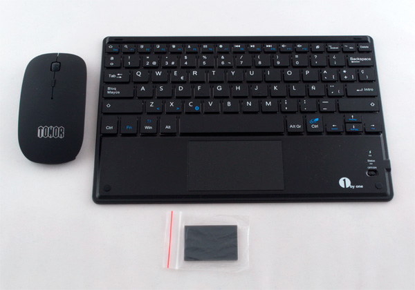 Но ко мне док-станция, как я уже говорил, не приехала, поэтому я для этого планшета приобрел беспроводную клавиатуру с тачпэдом. В комплекте с клавиатурой шла беспроводная мышь, но так как у клавиатуры есть тачпэд, то можно обойтись и без мыши.