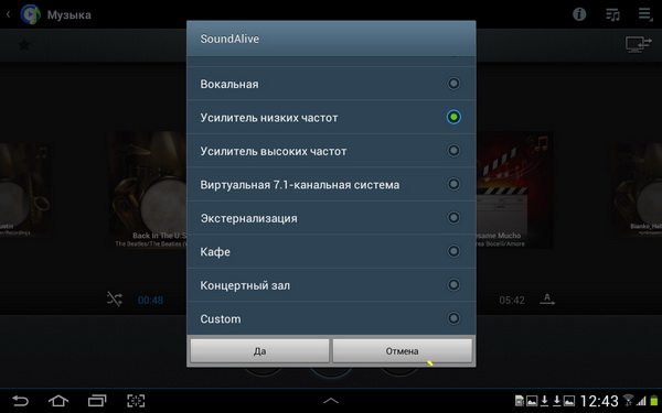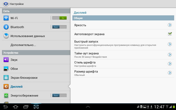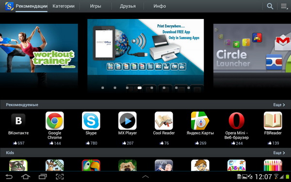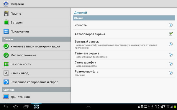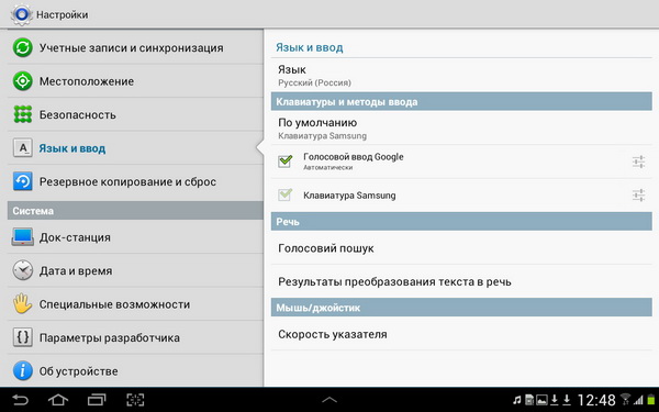 Также из чисто самсунговских дополнений - тут кроме стандартных трех экранных клавиш "Возврат", "Домой" и "Список запущенных задач" добавляется еще и четвертая, настраиваемая, клавиша. Как она настраивается - поговорим в разделе, посвященном настройкам.