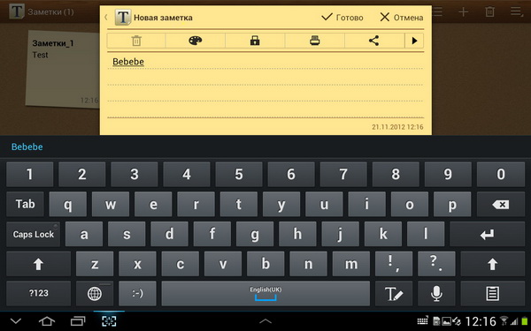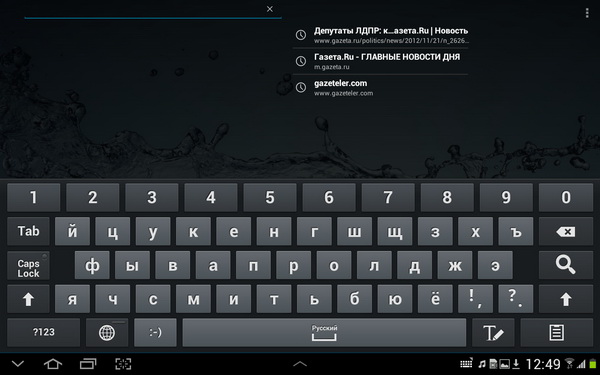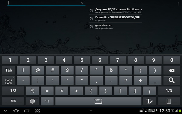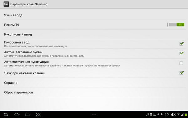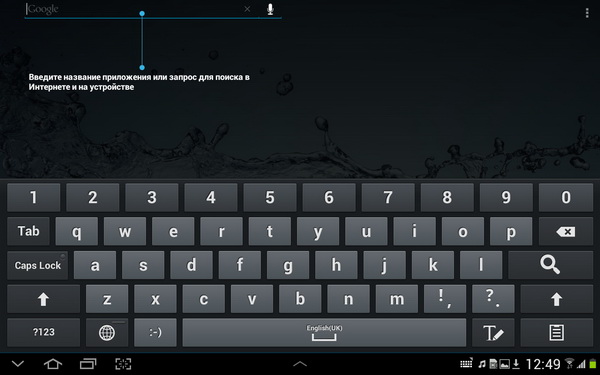 Стандартная самсунговская планшетная клавиатура - в общем, достаточно удобная, хотя и не слишком красивая. Режима swype не имеет.