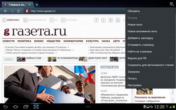 Обычный андроидный браузер. Пользоваться, в общем, удобно, но я предпочитаю полноценный мобильный Google Chrome.