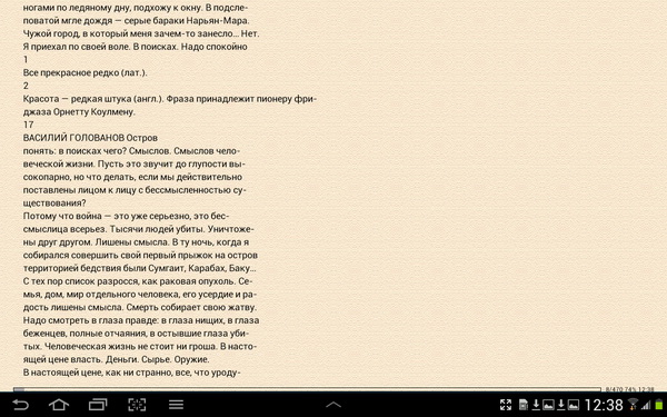 Да и FBReader - очень так себе читалка, на мой взгляд. Заметно ниже среднего. Для телефона она, может, еще туда-сюда, а для планшета - вообще ниже плинтуса. Не уметь делать двухстраничный режим для альбомной ориентации - кто вообще додумался ее сюда поставить?