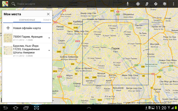 Здесь доступен офлайновый доступ, когда вы можете заранее скачать нужные вам участки карт, чтобы потом обращаться к ним без всякого подключения к Интернету. Впрочем, это все работает далеко не всегда. Для американских городов работает почти для всех, для европейских - далеко не для всех: например, Париж сохраняет, а Москву и Барселону - нет.