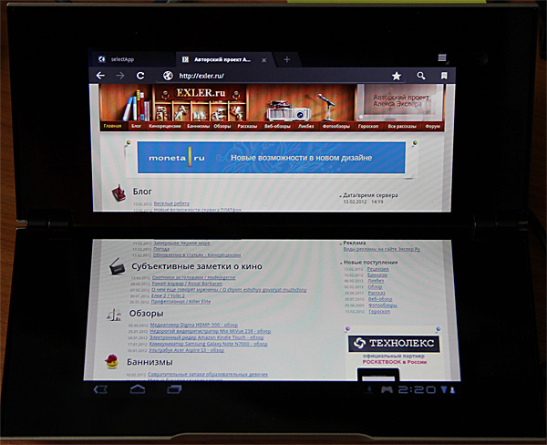 Ну и должен сказать, что приложения на Tablet P оказались лучше приспособлены под использования с двумя экранами, чем я предполагал. Есть, конечно, кое-какие неудобства (особенно с браузером и картами), но одновременно налицо и явные достоинства такого формфактора.
