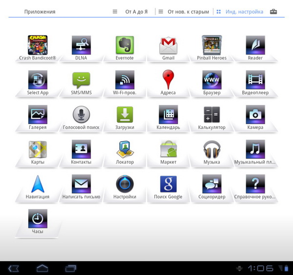 Здесь тридцать одно приложение, в Sony Tablet S - тридцать семь.