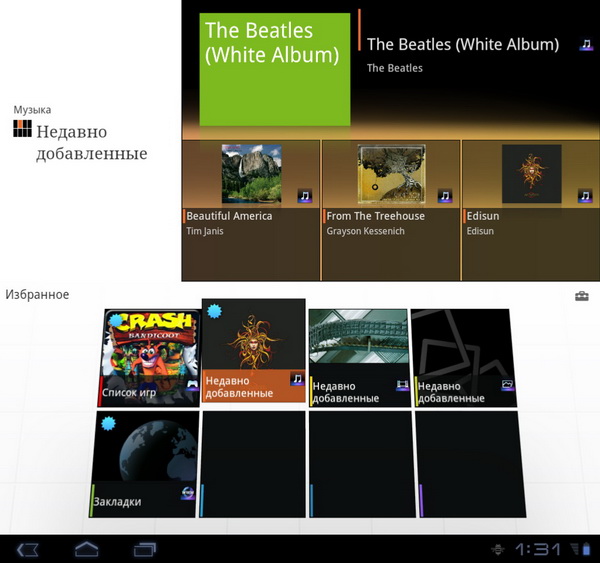 Раздел "Избранное" несколько отличается от Tablet S: он разбит по горизонтали на два окна.