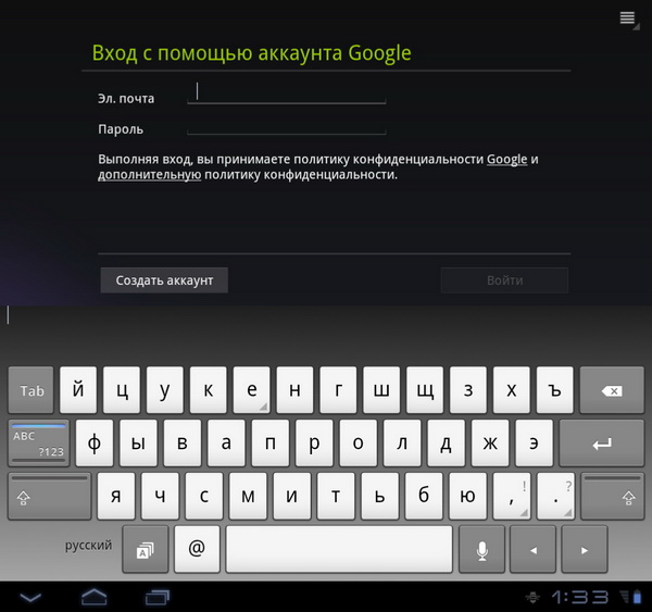 Операционная система - Android 3.2.1 (Honeycomb)