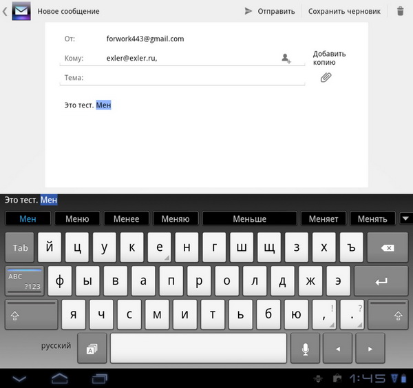 Почтой пользоваться удобно. Набирать текст - вообще отлично, да и просмотр писем на два экрана раскладывается так, как полагается: на верхнем экране просмотр письма, на нижнем - список заголовков.