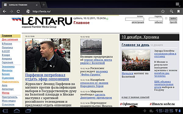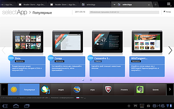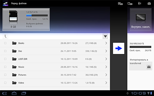 О новой, чисто планшетной версии Android 3.0, я уже подробно писал, так что не буду повторяться, описывая принципы построения интерфейса и так далее. Поговорим об особенностях и специфических приложениях именно данной модели планшета, на котором установлена система Android 3.2.1.