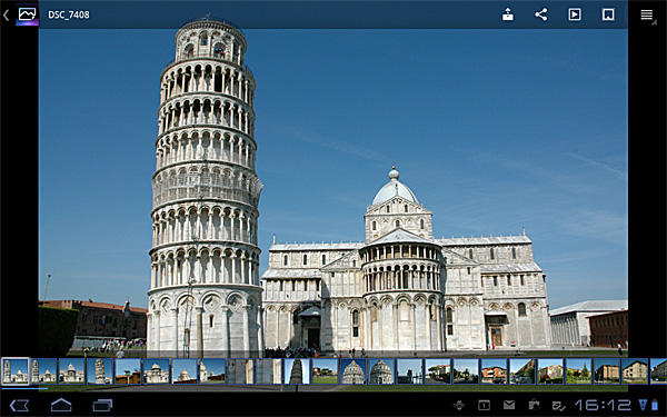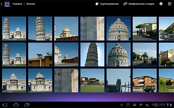 Отличные углы обзора (при повороте что по вертикали, что по горизонтали яркость и контраст падают очень незначительно), хорошая яркость (Samsung Galaxy Tab 10.1 на полной яркости все-таки заметно светлее).