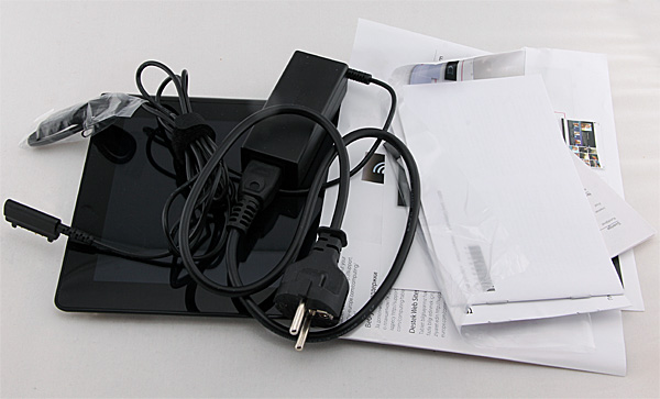 Комплект поставки: устройство, специальный адаптер питания, какие-то книжечки, петелька-держалка.