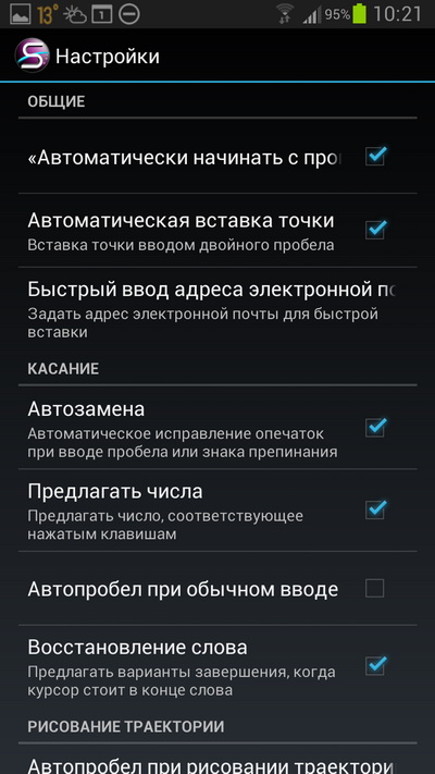 В новом Android этот режим будет входить в базовую клавиатуру, однако я тестировал подобные режимы на разных клавиатурах - они работают очень по-разному. В данном же случае режим срабатывает вполне неплохо - я даже стал им пользоваться. Хотя тут всегда нужно заранее уметь предугадать, знает ли программа набираемое слово или нет. Потому что если не знает - лучше вводить побуквенно, а не через Slide.