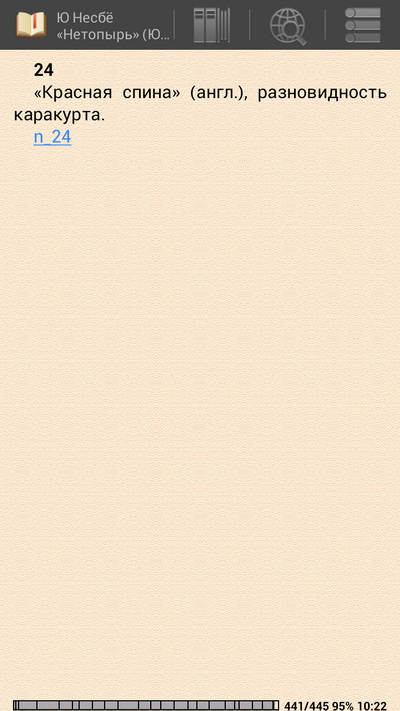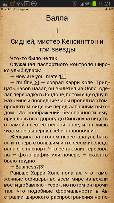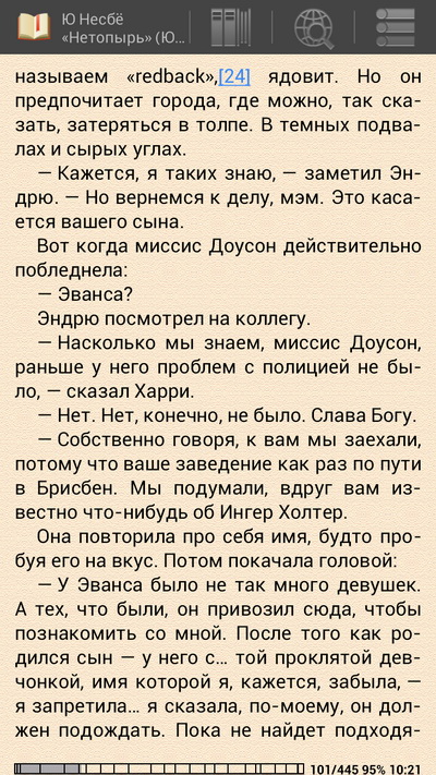 Для чтения книг в основном пользуюсь CoolReader, но у него есть две неприятные особенности. Первая - не работают сноски в формате EPUB, а я только этот формат и предпочитаю. Перейти по сноскам нельзя, и это очень даже печально.