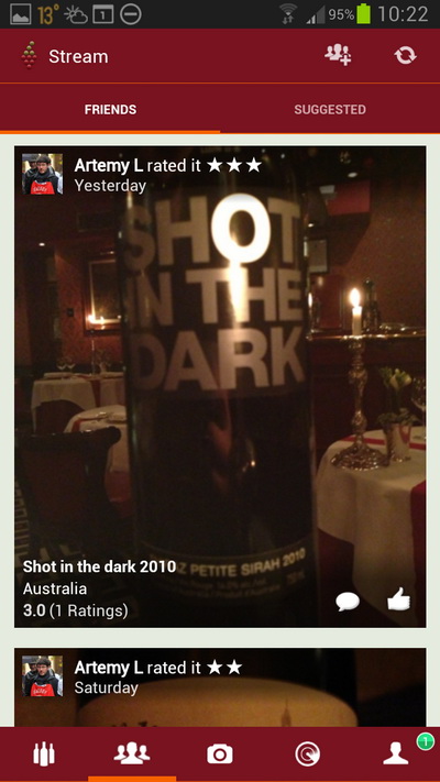 Посоветовали бесплатную утилиту Vivino Wine Scaner - это и облачное хранилище своих оценок и заметок по различному вину, и мощнейшая справочная база данных по винам, и нечто вроде социальной сети, в которой ты можешь обмениваться мнениями и отслеживать то, что рекомендуют другие участники сети.