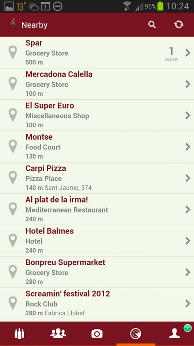 Интересный раздел - вина в соседних магазинах (это заносят пользователи). Для маленьких гордков не особенно актуально, но когда вокруг живет много пользователей этой сети - информации уже немало.