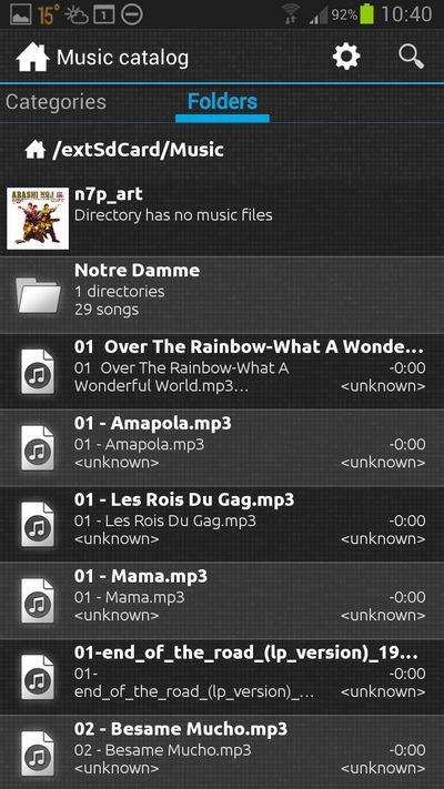 И вот самое для меня главное - отбор по папкам. Очень немногие плееры умеют показывать музыку по папкам, что бывает страшно неудобно, когда вы записываете какие-то свои сборники либо сами раскладываете исполнителей или альбомы по папкам.