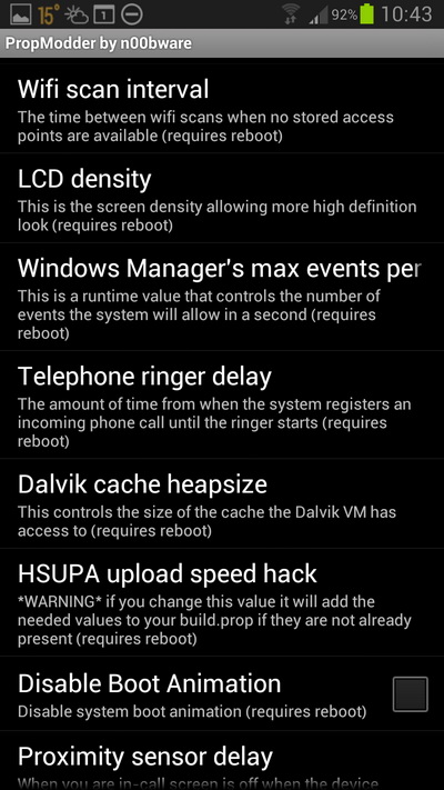 Впрочем, есть одна маленькая проблема. В этой программе из Google Play плотность почему-то ограничена 260. И ее из программы нельзя вернуть на 290. Но можно это сделать вручную - в файле /system/build.prop в ro.sf.lcd_density поставить какое угодно значение и перезагрузить телефон. Кстати, это можно сделать и без всяких программ.