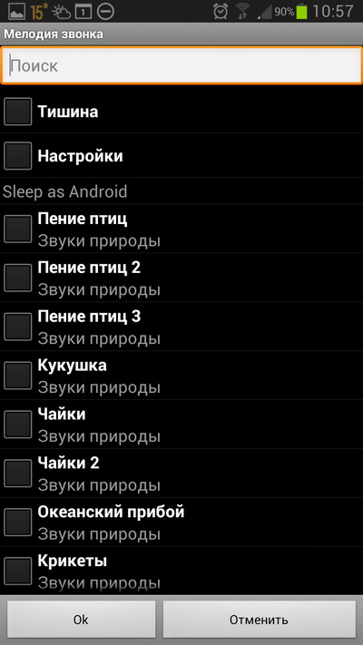 Мелодии звонка. Океанский прибой включать не рекомендую. Некоторые сообщали о неприятных побочных эффектах.