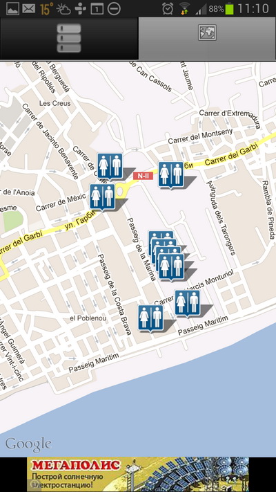 При этом еще и показывает, где именно расположена ближайшая точка - как известно, в ресторанах-кафе человека с улицы не всегда пустят, если он не купил что-нибудь. А в определенных случаях купить что-нибудь можно уже и не успеть.