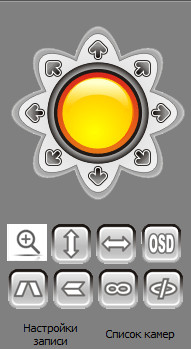Кнопки управления под верхним элементом: зум, вверх-вниз, влево-вправо, OSD (включение в запись названия камеры и даты-времени), зеркальное отображение, реверс, выключение, включение.