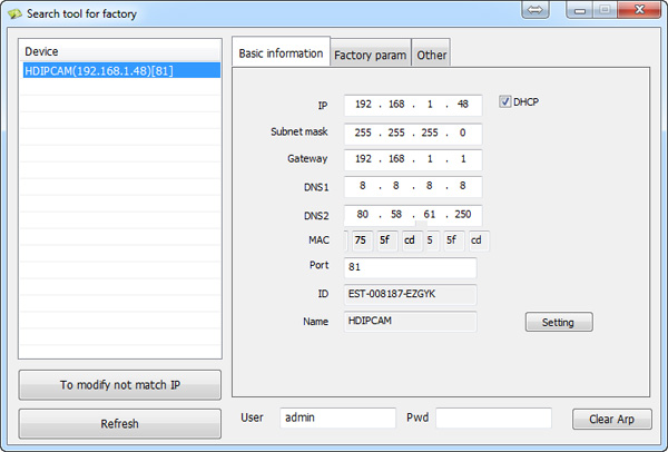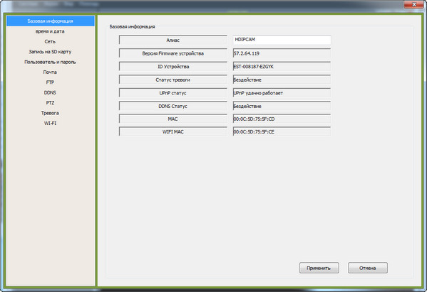 Подключил камеру к сети и проводом к роутеру (для первоначальной настройки). Установил и запустил утилиту DeviceClient.