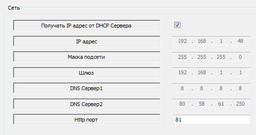 Здесь используется технология P2P, поэтому для камеры не нужно выделять статичный IP: тут может использоваться любой адрес сети, выданный DHCP роутера.