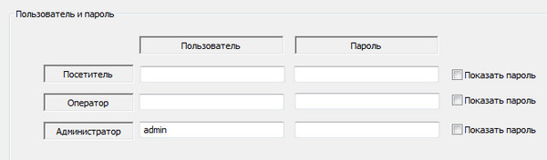 В следующем разделе можно задать пароль администратора и ввести еще двух пользователей: оператора и посетителя, у которых будут разные права доступа.