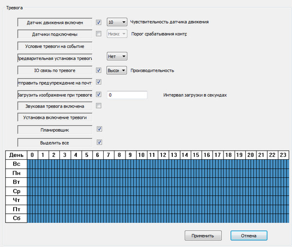 Но это все используется в режиме прямого просмотра, а с видеокамерой, конечно, интереснее всего использовать возможность реагирования на какое-то движение и при появлении движения записывать происходящее вокруг.