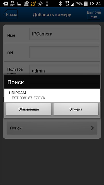 Настраивается мобильное приложение следующим образом. Вам нужно подключить смартфон к той же локальной сети, в которой работает камера, запустить приложение и там выбрать пункт "Добавить камеру", а затем нажать кнопку поиска. Приложение найдет камеру и установит ее (если вы камеру уже запаролили, что обязательно нужно сделать, то тут нужно будет ввести пароль к ней).