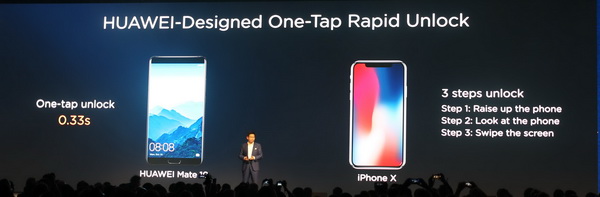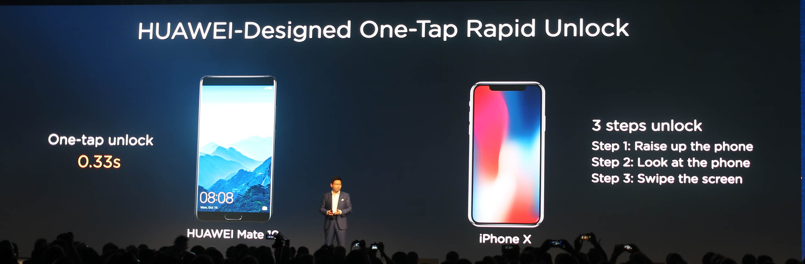 Далее опять пинок Apple: чтобы разблокировать айфон - надо сделать три шага, а Mate 10 справляется одним прикосновением за 0,33 секунды. Тут, кстати, правда, штатными средствами айфон разблокировать мгновенно не получится. (Вопрос из зала: "Как в айфоне убрать экран блокировки?" Ответ из зала: "Стандартными средствами - никак, это Apple, детка".) А Mate - получится, но с помощью сканера отпечатка. А если не хочешь использовать сканер - будет экран блокировки, который просто так не отключить (у Huawei это всегда так). Но это Android, детка, за что и люблю: ставите приложение NoLock, после чего разблокировка любого андроидного смартфона происходит или по нажатии кнопки питания, или по двойному тапу по экрану. Занимает это 0,146 секунды, я измерял. И, заметьте, я избегаю эмоциональных оценок из серии "айфону такое и не снилось".