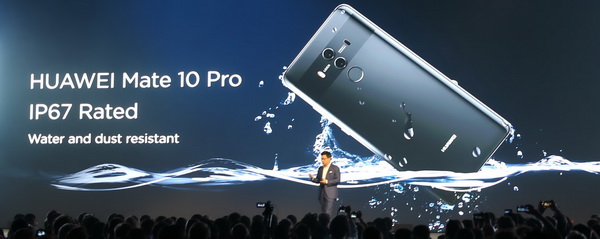 У Mate 10 Pro защита по стандарту IP67 - это означает, что смартфон можно до получаса погружать под воду на глубину до метра. Вот полная спецификация IP67. Но смартфон при этом лишился аудиовыхода: теперь только через USB-C. Похоже, это у всех скоро станет новым стандартом.