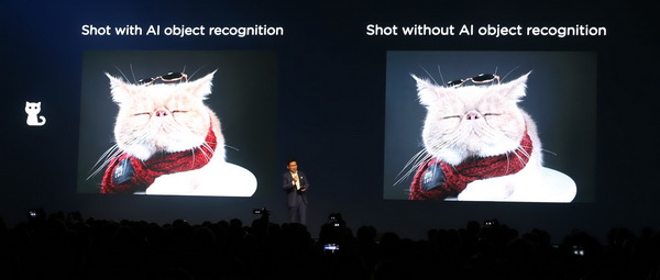 Плюс - два процессора обработки, также использование того самого модуля искусственного интеллекта, который должен мгновенно определить сюжет (а их, как обещали на презентации, заложено очень большое количество, включая котиков, листву и одинокой парус в тумане моря голубом) и улучшить изображение под конкретную сцену.