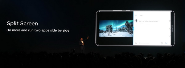 Режим настраиваемого двойного экрана с двумя приложениями - это вроде давно есть. Размер экранов можно менять. Оно выглядит прикольно, но я вроде такое ни на одном смартфоне не использовал. Впрочем, это мое личное мнение и я на нем не настаиваю.
