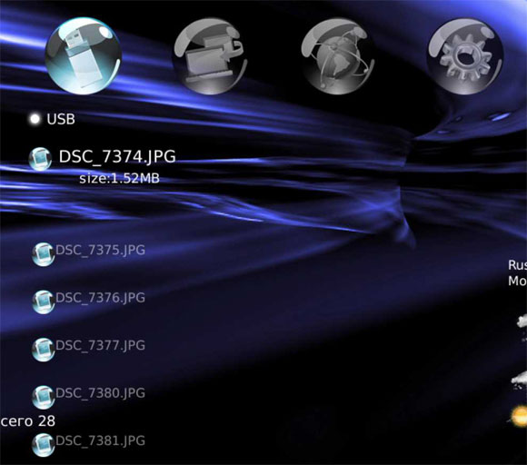 С фотографиями - та же ботва. Список файлов, который никак не сортируется. Выбираете картинку, нажимаете на "ОК" - выводится эта картинка, после этого через пять секунд - следующая по списку и так далее. Картинки курсором можно перемещать по экрану влево-вправо вниз-вверх. Еще бы понять, зачем это кому-то может понадобиться, так как картинки все равно масштабируются в размер экрана...